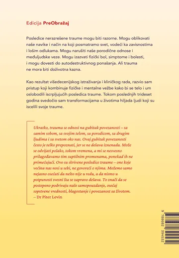 PITER LEVIN je tvorac somatskog doživljavanja, inovativnog pristupa lečenju traume. Doktorirao je medicinsku biofziku i psihologiju. Tokom svog višedecenijskog proučavanja stresa i traume, dr Levin je dao doprinos raznim naučnim i popularnim publikacijama.